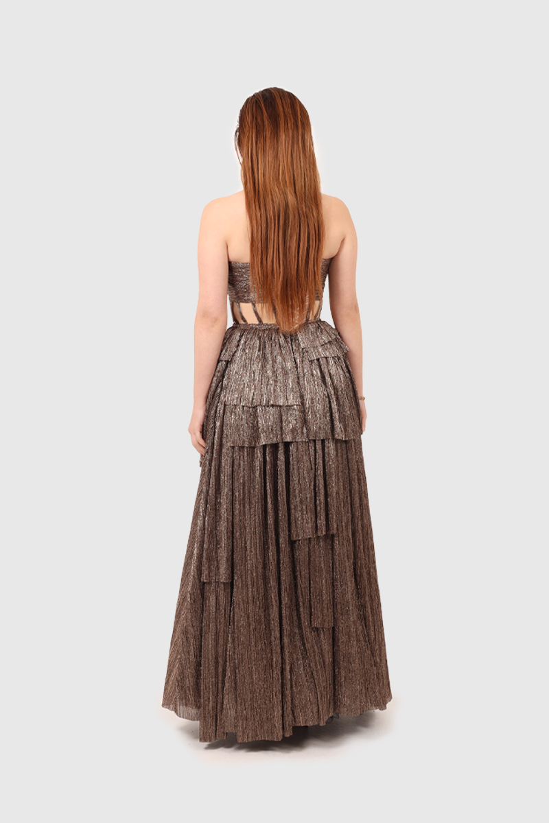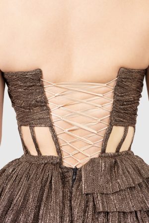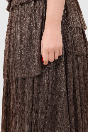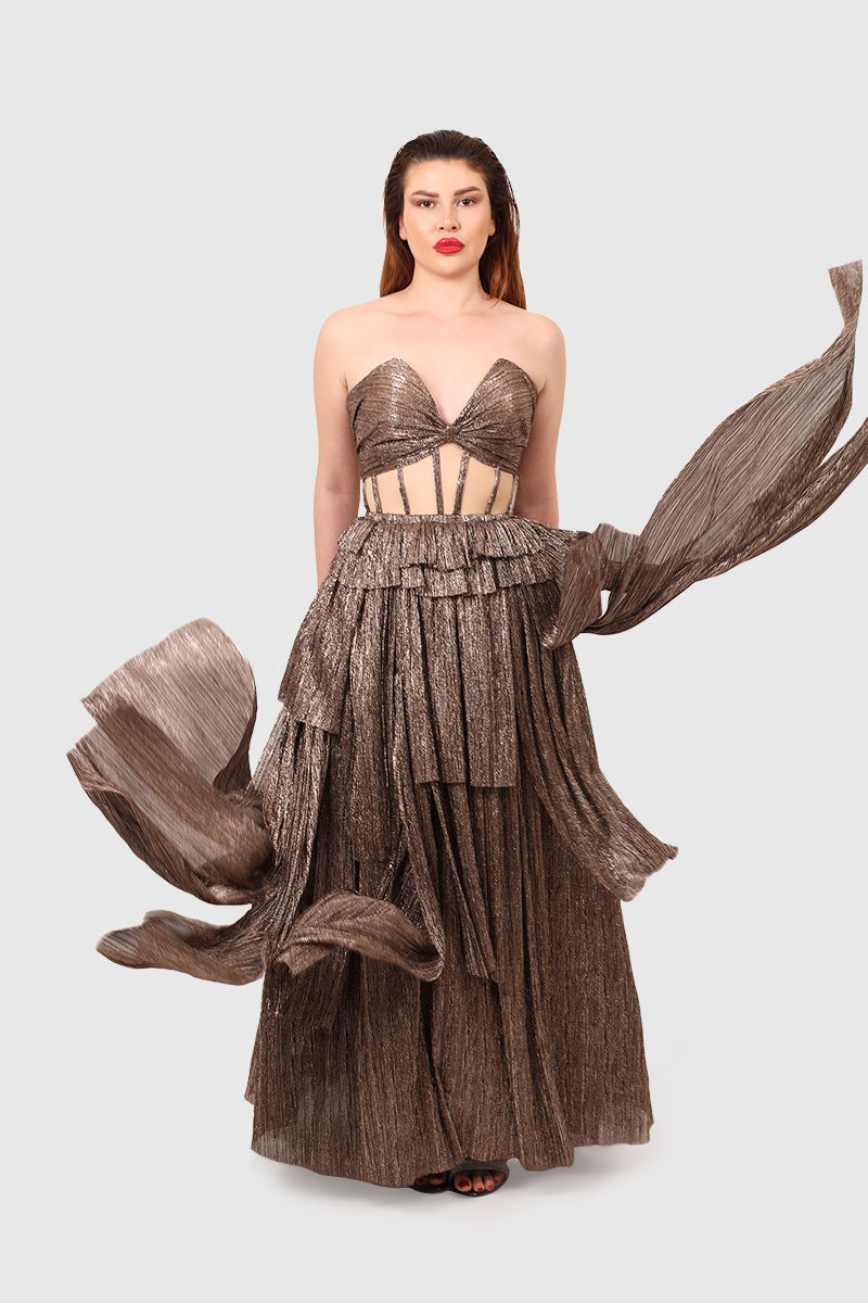 Bilinenin aksine farklı olmak isteyenler için kumaşı çok rahat kendinden parıltılı örme bir kumaş asimetrik detayları olan şık bir abiye elbise.