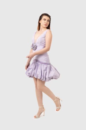 Lila rengi elbisemiz esnek likralı kumaştan yapılmıştır. Lila renginin huzur veren zarafetiyle esnek likralı kumaşın konforunu bir araya getiriyor. Vücuda mükemmel şekilde oturan bu elbise, hareket özgürlüğü sunarken şıklığınızdan ödün vermemenizi sağlar.