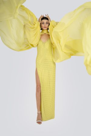 Zengin taş işlemeleri, ışığı her açıdan yansıtarak büyüleyici bir etki yaratırken, ince işçiliği elbisenin lüks ve özgün karakterini vurgular. İster özel davetlerde, ister kırmızı halıda giymek için, Albus Adamas, giriş yaptığınız her ortamda tüm bakışları üzerinize çekecek.
