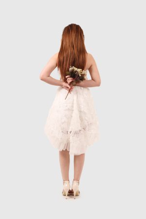 Albus, ihtişam ve zarafetin birleştiği, taşların göz alıcı parıltısıyla şekillenen bir sanat eseri. Özel dikim detaylarla vücuda oturan bu elbise, asaletin ve gücün sembolü olan yakut rengini modern tasarım çizgileriyle buluşturuyor.